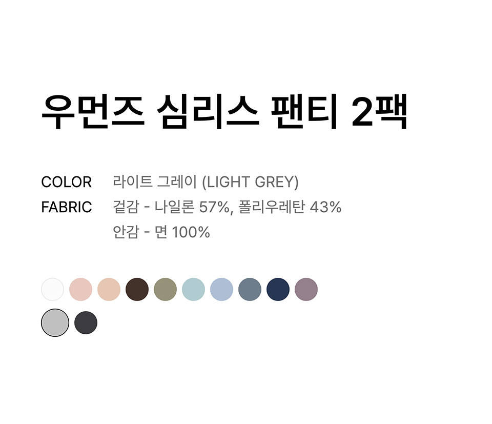우먼즈 심리스 팬티 2팩 [라이트 그레이]