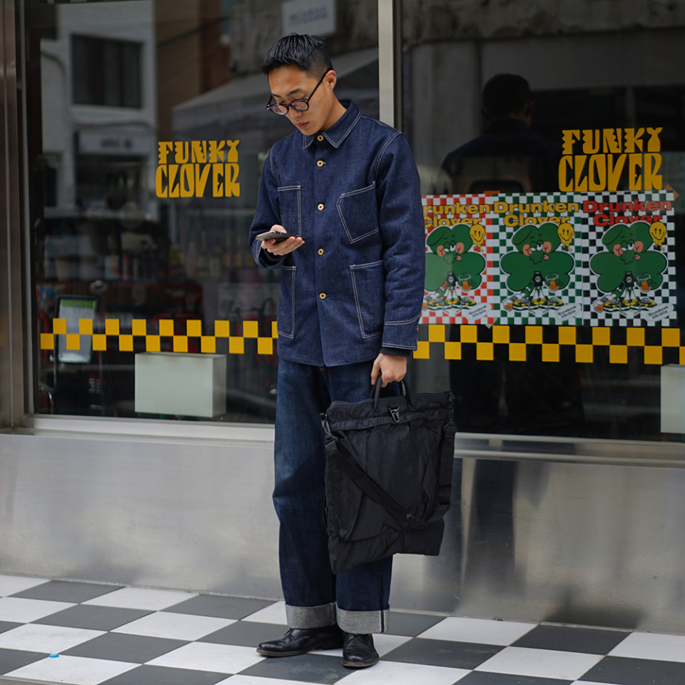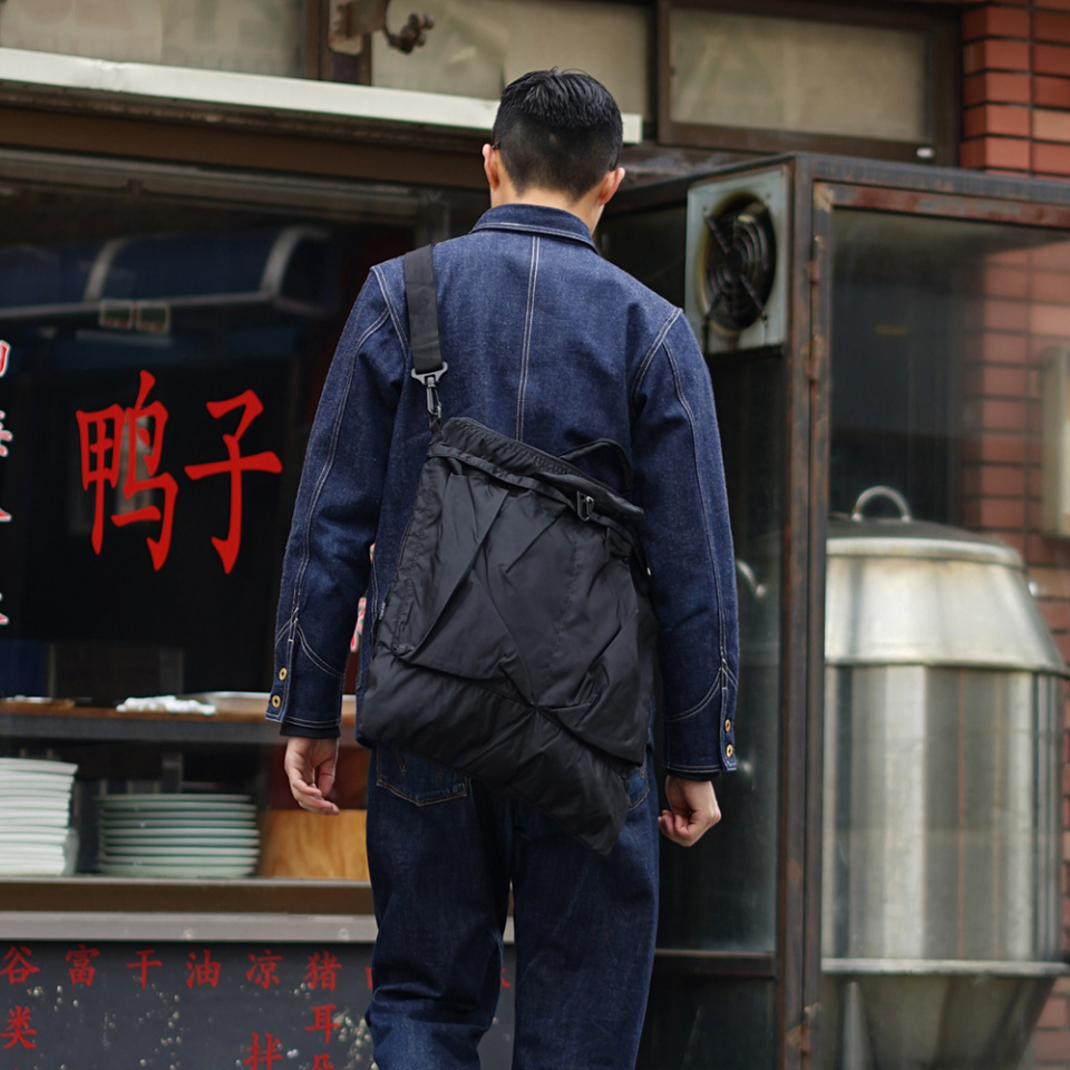 초기형 핼맷백에서 자주 보여지는, 'MA-1'과 'L2B'에 사용되는 나일론 원단으로 제작했으며,