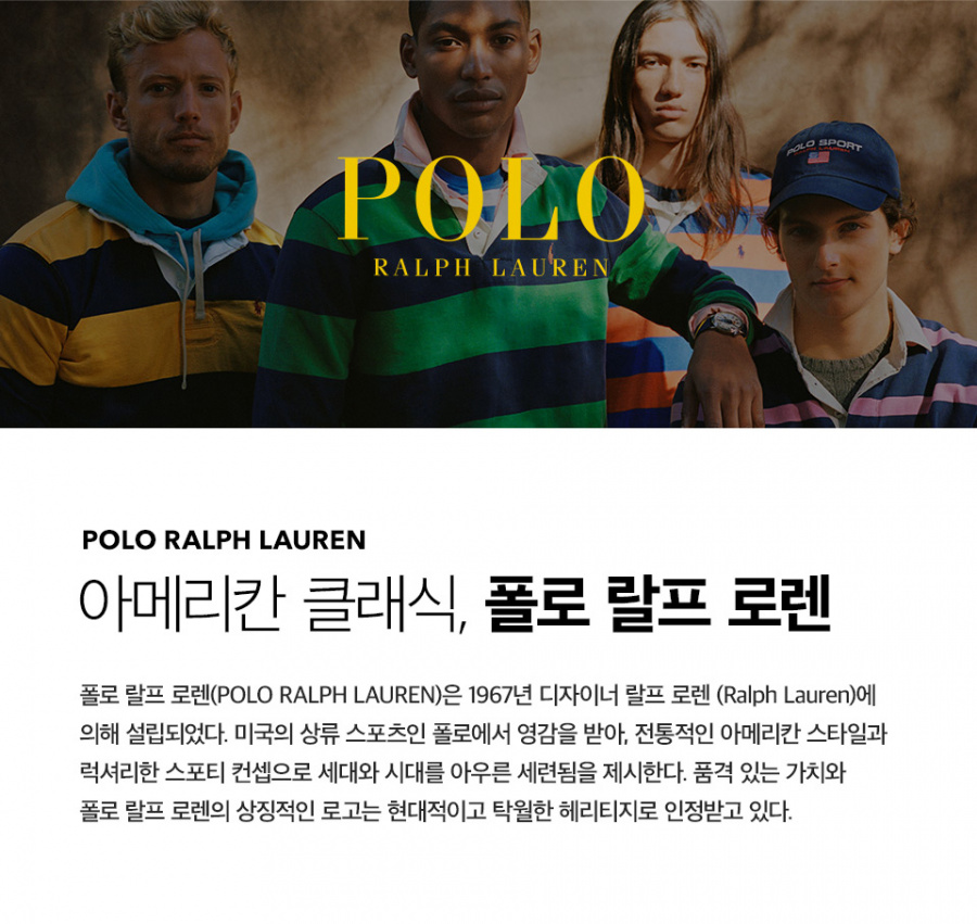폴로 랄프 로렌(POLO RALPH LAUREN)은 미국을 대표하는 디자이너 랄프 로렌이 1967년에 시작한 브랜드입니다. 폴로 랄프 로렌의 제품은 실용적이면서 품격을 갖춰 꾸준한 인기와 사랑을 받고 있습니다.