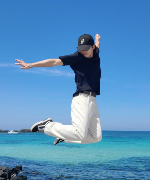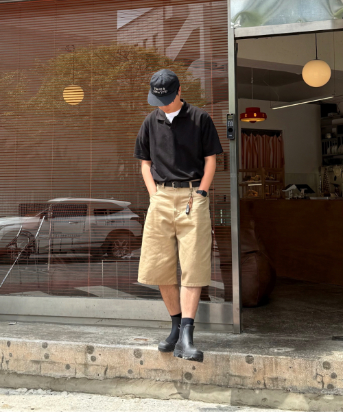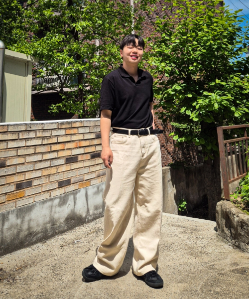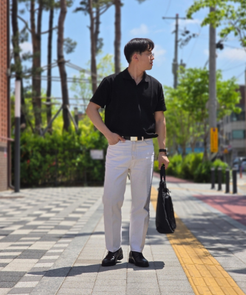 코튼 세미 오버핏 피케 티셔츠 [블랙]