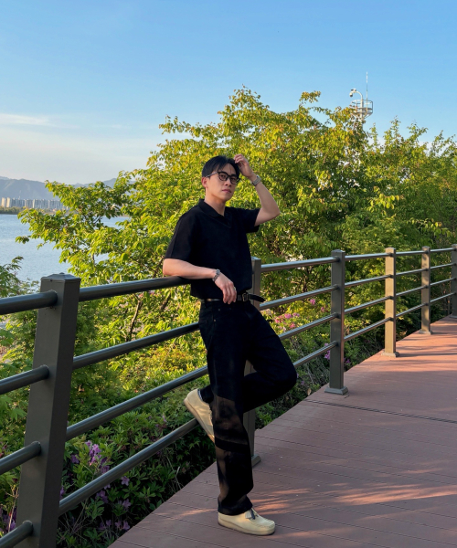 [서강준 PICK] 와플 헨리넥 하프 티셔츠 [BLACK]