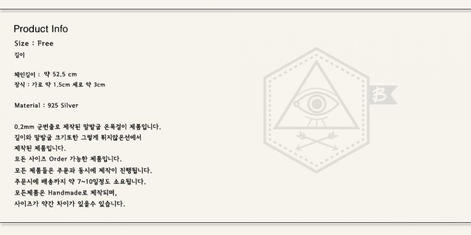 고급소재와, Silver 925 를 사용하여 다양한 스타일과 심플함, 클래식한감성, 빈티지한 느낌을 선보이는 브랜드 입니다.