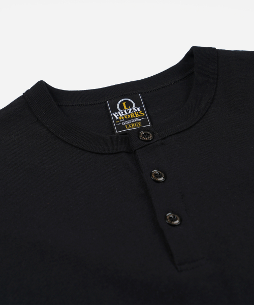 HENLEY NECK HALF TEE _ BLACK