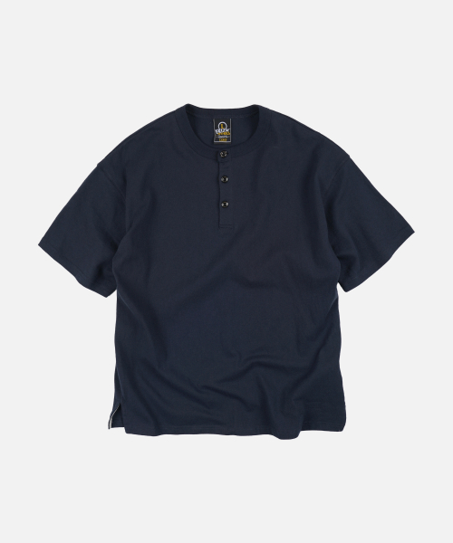 HENLEY NECK HALF TEE _ NAVY