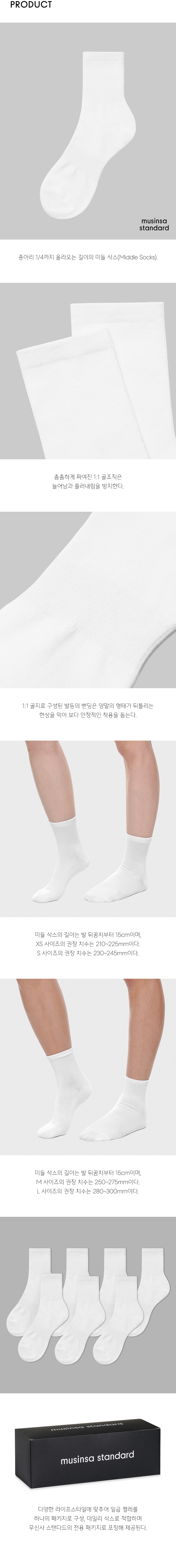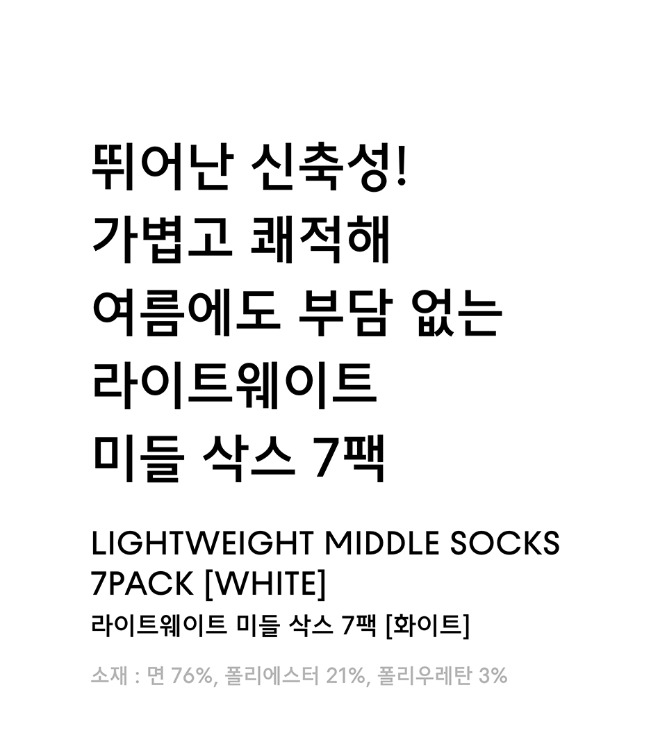 라이트웨이트 미들 삭스 7팩 [화이트]