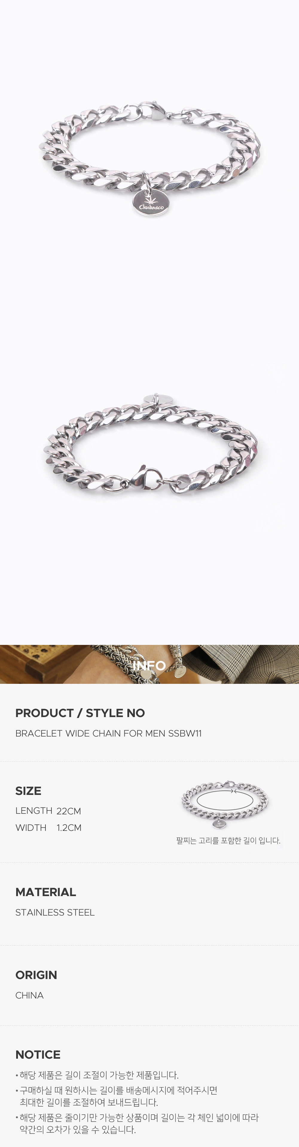 STAINLESS STEEL BRACELET-WIDE CHAIN FOR MEN