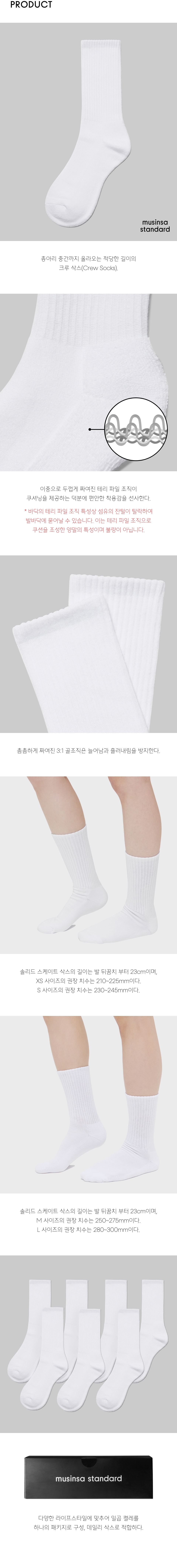크루 삭스 7팩 [화이트]