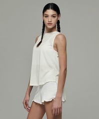 여성 요가복 DEVI-TS0010-아이보리 필라테스 커버업 오프닝 슬리브리스