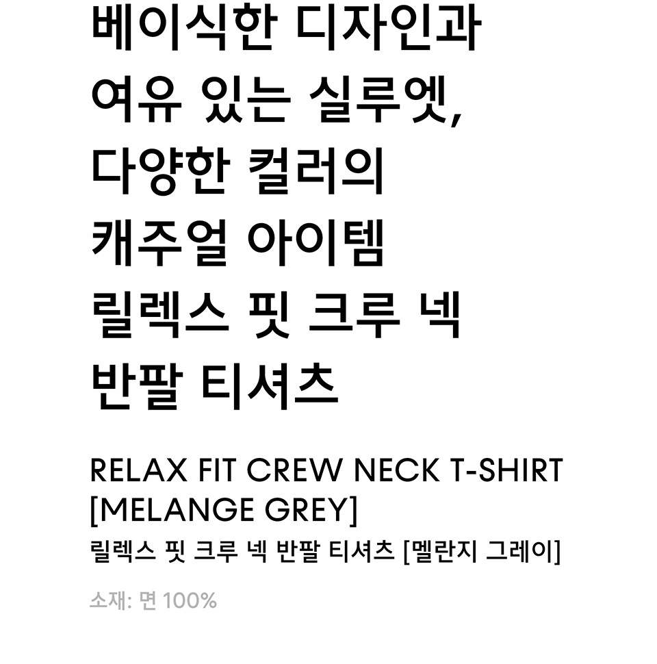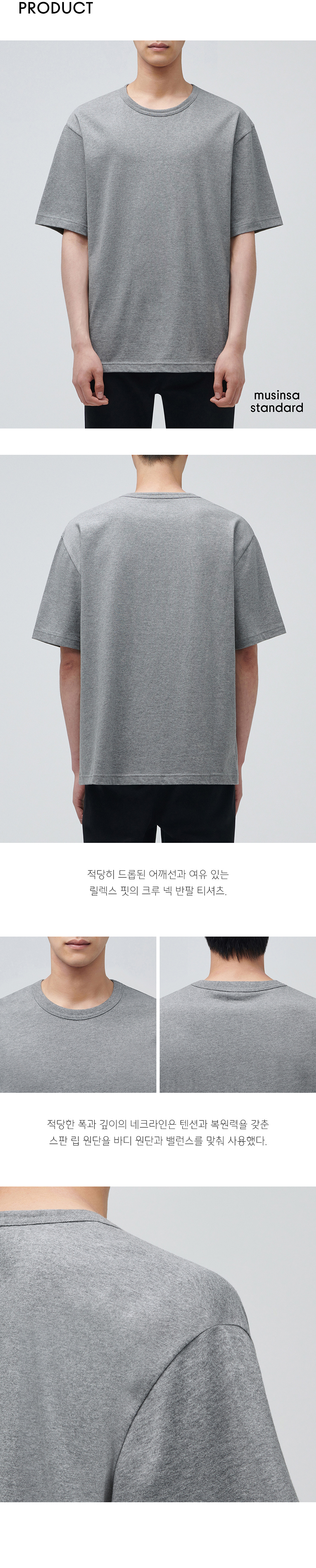 릴렉스 핏 크루 넥 티셔츠 [멜란지 그레이]