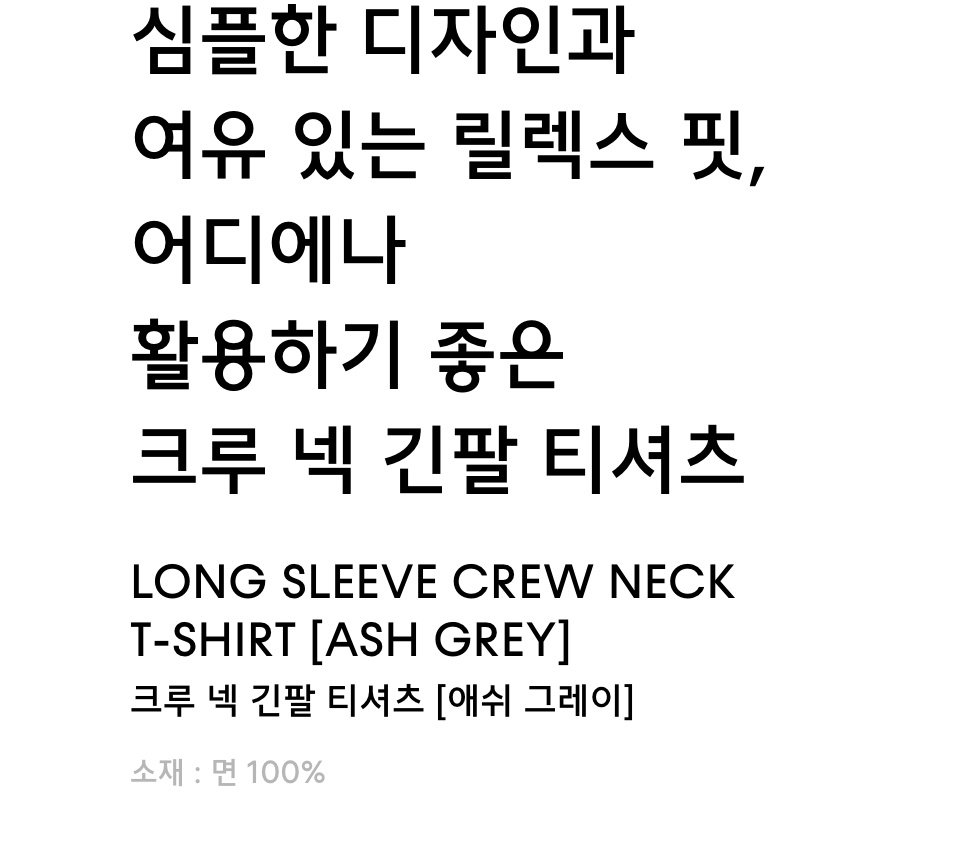 크루 넥 긴소매 티셔츠 [애쉬 그레이]