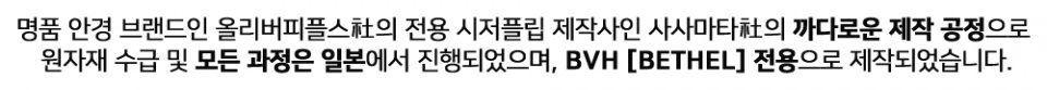 BVH EYEWEAR(비브이에이치)는 여러분야의 아티스트들과의 콜라보레이션으로 새로운 문화를 만들고 크리에이티브한 상품들을 제안하고 예술적인 고유의 디자인 프로세스를 거쳐 기획, 제작됩니다.