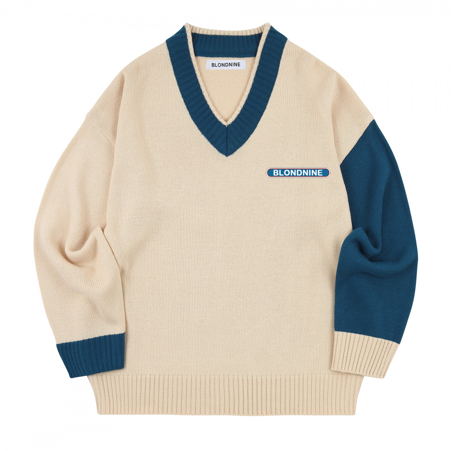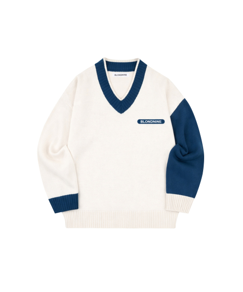 V NECK COLOR KNIT SWEATER_BLUE