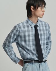 세미 오버핏 코튼 시어서커 옴브레 체크 셔츠 [네이비]