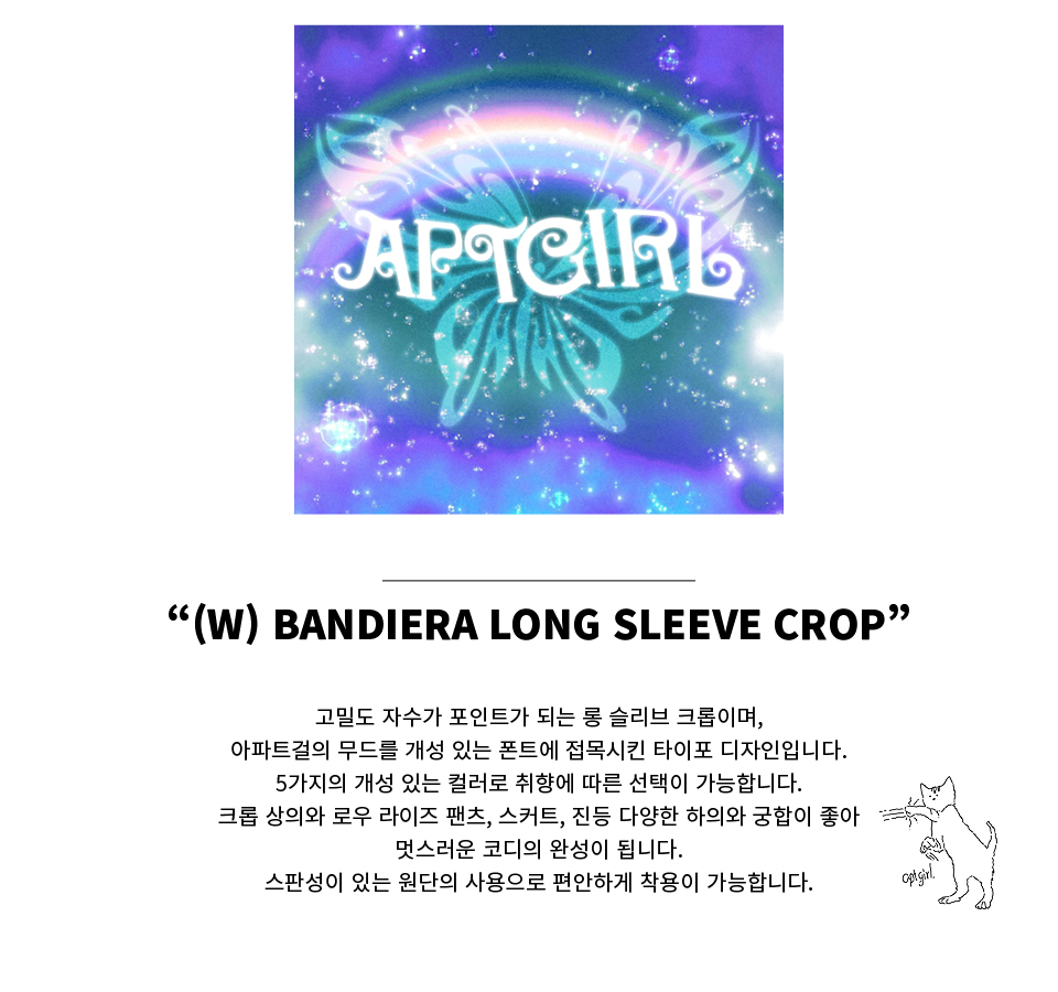 APARTMENT(아파트먼트)는 여성향의 유니섹스 도메스틱브랜드입니다. 10대~20대의 니즈를 채울수 있는 트렌디함과 그들이 구매하는 합리적인 가격을 기본 베이스로 선정하여 모든 요소를 최적 가성비에 맞춰 소비자들에게 합리적인 소비를 제시합니다. 우리 사회 근처에 일상의 모든 요소들이 우리의 영감이 되는 컨템포러리 브랜드입니다.