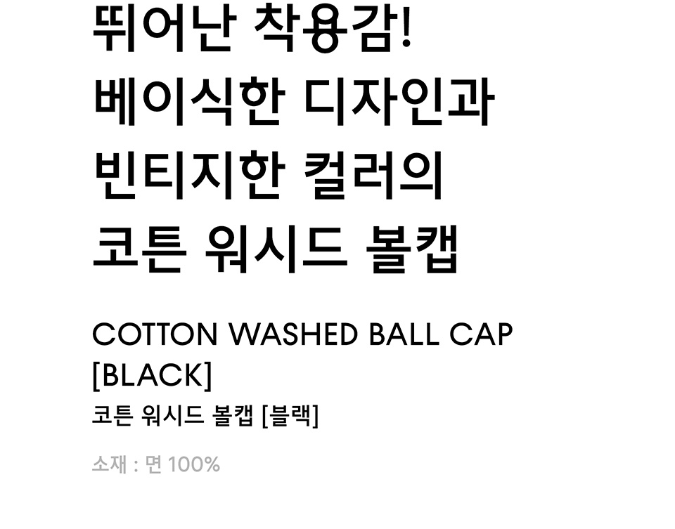 코튼 워시드 볼캡 [블랙]