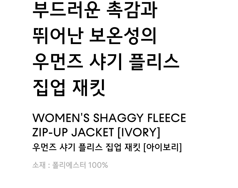 우먼즈 샤기 플리스 집업 재킷 [아이보리]