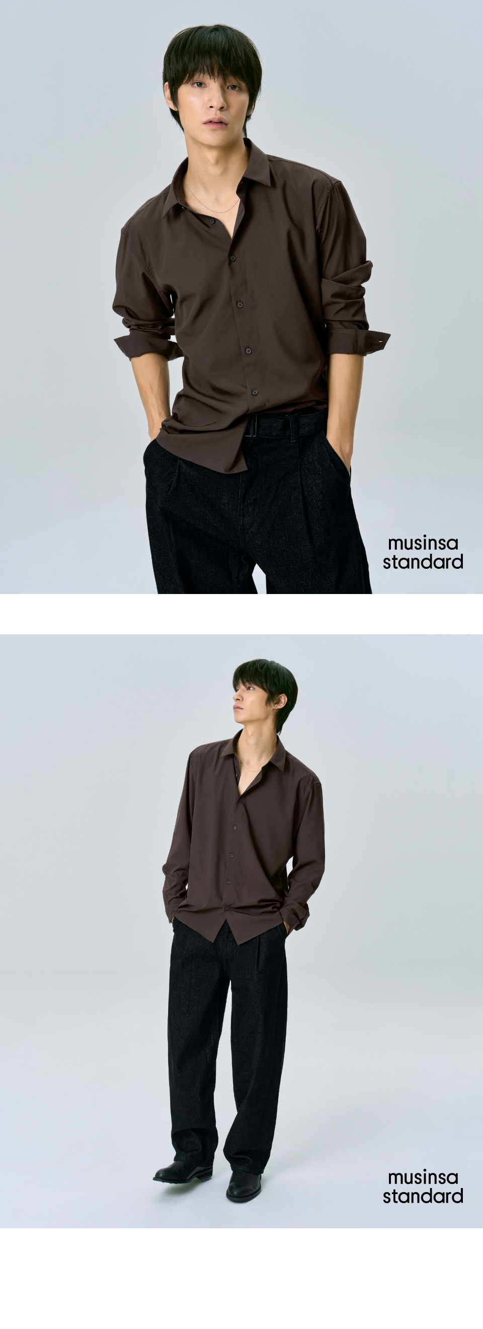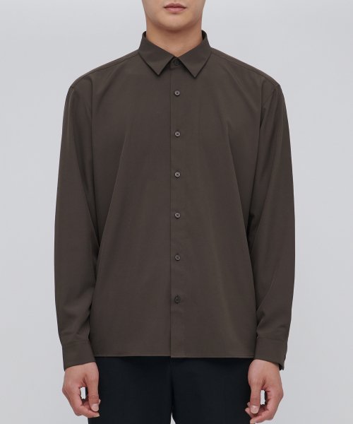 릴렉스 핏 실키 셔츠 [다크 브라운]