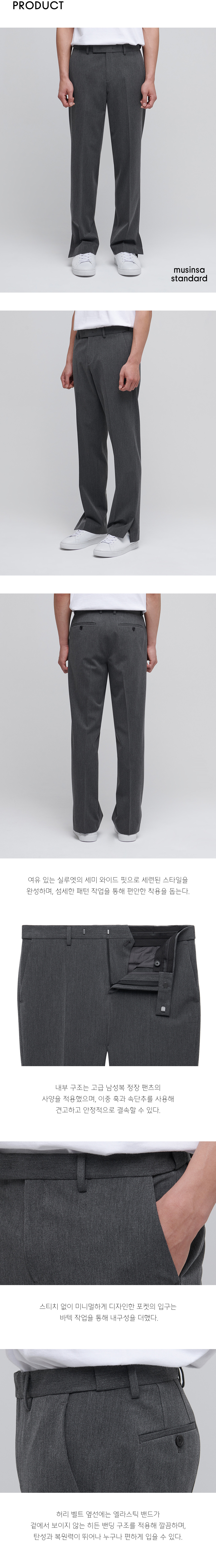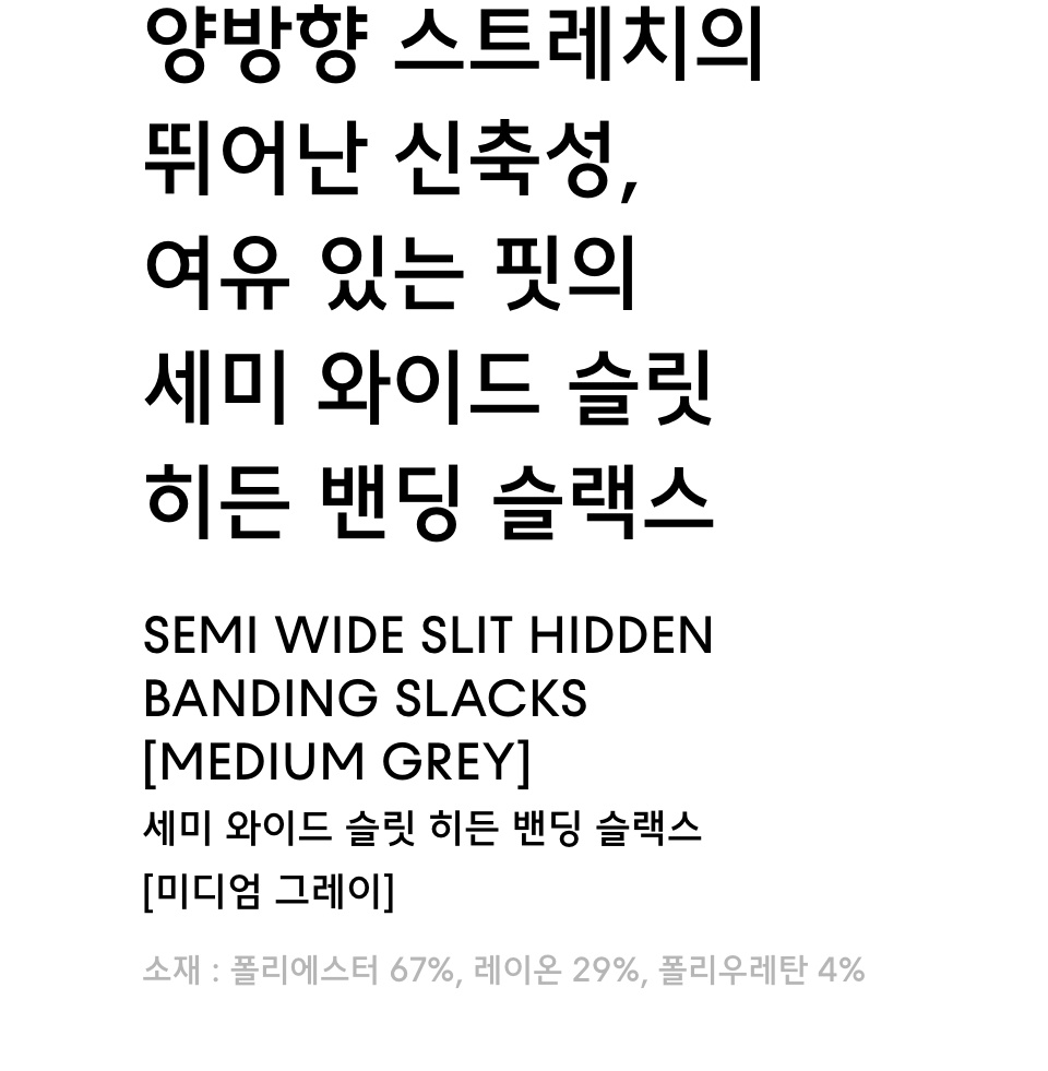 세미 와이드 히든 밴딩 슬랙스 [아이언 그레이]