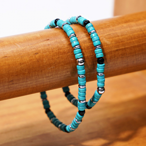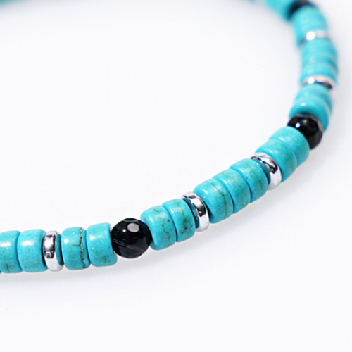 | 상품 정보 소재 - 원석,써지컬스틸 색상 - 상세페이지 참고 제조사 - ㈜제이반스 제조국 - 대한민국 제조년월 - 주문시 제작 사이즈 착용둘레 (남성용 약18cm 내외 , 여성용 약15.5cm 내외) 하단 실측사진을 참고해주세요. 착용둘레는 팔찌의 총길이가 아닌 실제 착용시 사이즈를 측정합니다. 2번 감는 팔찌의 경우 2번 감은 후 안쪽 내경의 길이가 착용둘레가 됩니다. 주문시 착용하던 팔찌의 길이가 아닌 손목의 둘레를 확인 후 주문하여 주세요. 주문제작 선택시 요청하시는 사이즈에 맞춰 팔찌를 제작하여 드리며, 추가비용은 없습니다. 오프스카이 믹스 원석팔찌 4mm 론델과 해마타이트를 믹스해서 제작된 원석팔찌입니다. 하늘색 톤의 론델에 블랙 컷티드 오닉스가 포인트로 믹스되어 전체적으로 캐주얼하면서도 클래식한 느낌을 주는 팔찌로 디자인되었습니다. 슬림한 두께로 가볍게 포인트 악세사리로 착용하기 좋으며, 체인팔찌나 가죽팔찌 등 다른 악세사리와 함께 레이어드하면 더욱 잘 어울립니다. 커플팔찌로 착용하기 좋도록 남성용, 여성용, 주문제작 사이즈로 제작됩니다. 주문제작은 요청하시는 사이즈에 맞춰 팔찌 사이즈를 맞춰드리며 추가비용은 없습니다. 주문전 확인사항 주문제작 선택시 요청하시는 사이즈에 맞춰 팔찌를 제작하여 드리며, 추가비용은 없습니다. 팔찌 주문제작시 ""배송메세지""란에 요청하시는 사이즈를 남겨주시기 바랍니다. 제품 사용시 물, 스프레이, 향수 등이 닿을 경우 변색, 퇴색, 수명단축의 원인이 될 수 있으니 주의하시기 바랍니다. 주문제작 관련 자세한 사항은 게시판 또는 제이반스 고객센터 1577-4760으로 문의주시기 바랍니다. |