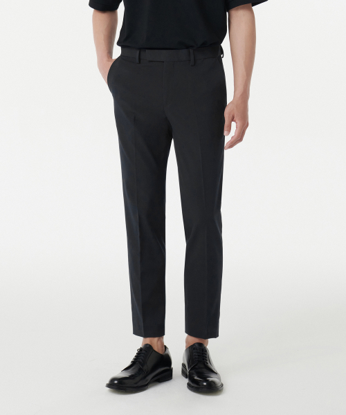 테이퍼드 히든 밴딩 크롭 슬랙스 [네이비]