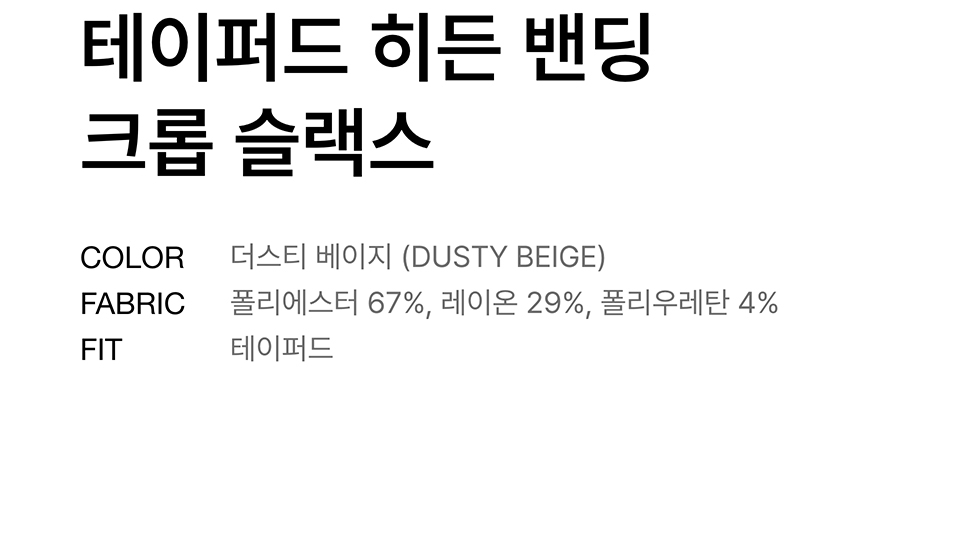 테이퍼드 히든 밴딩 크롭 슬랙스 [더스티 베이지]