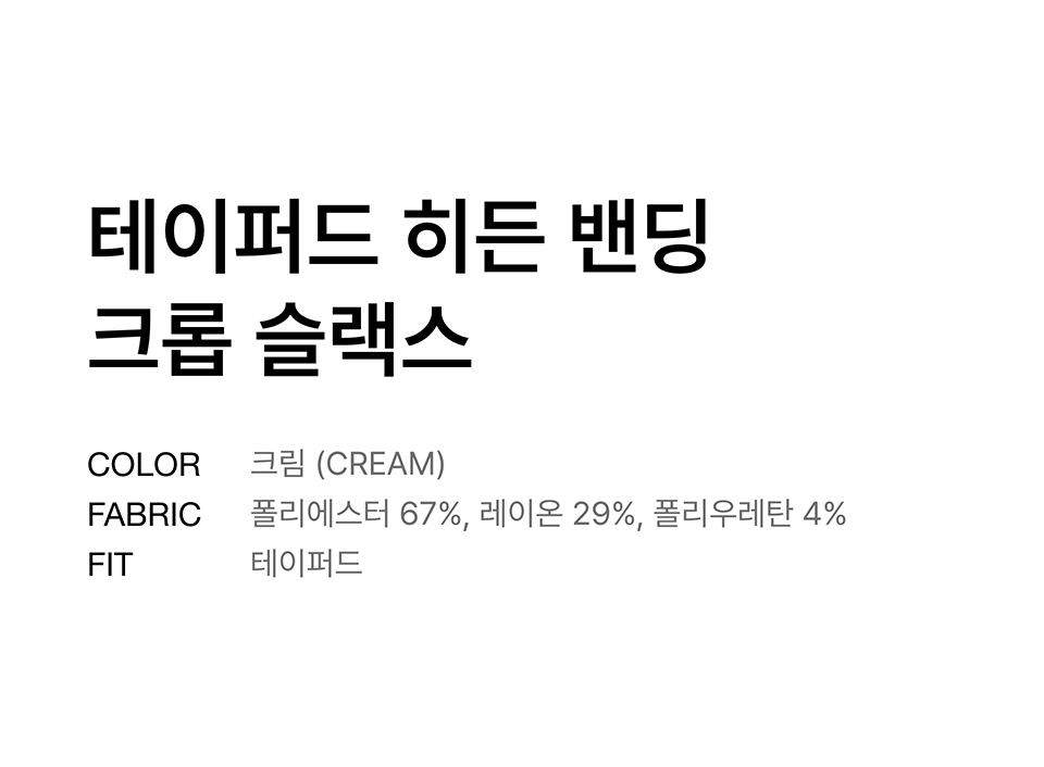 테이퍼드 히든 밴딩 크롭 슬랙스 [크림]
