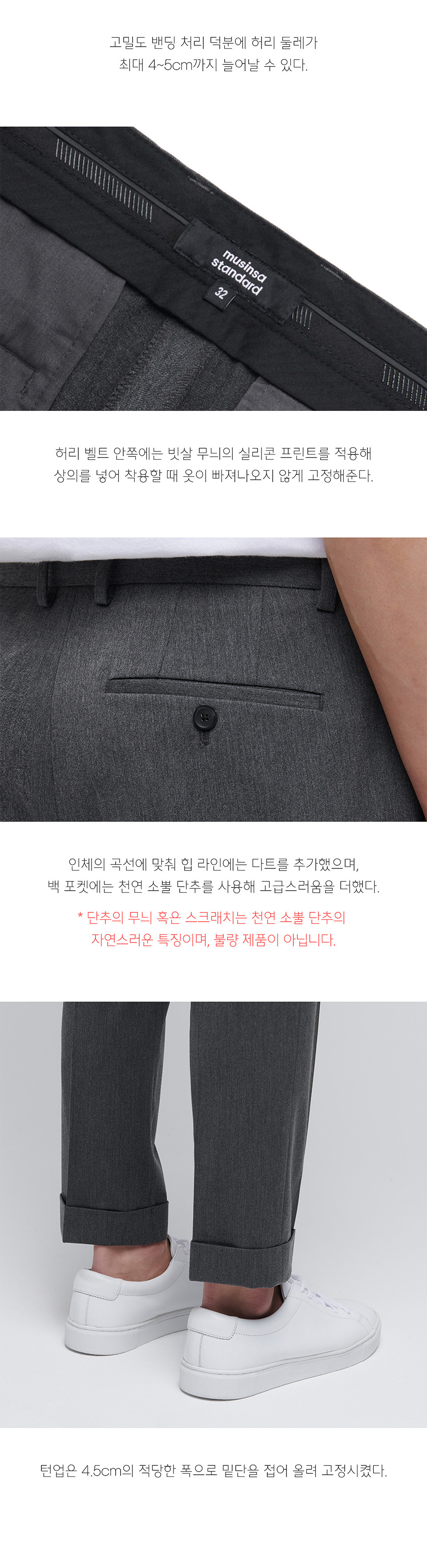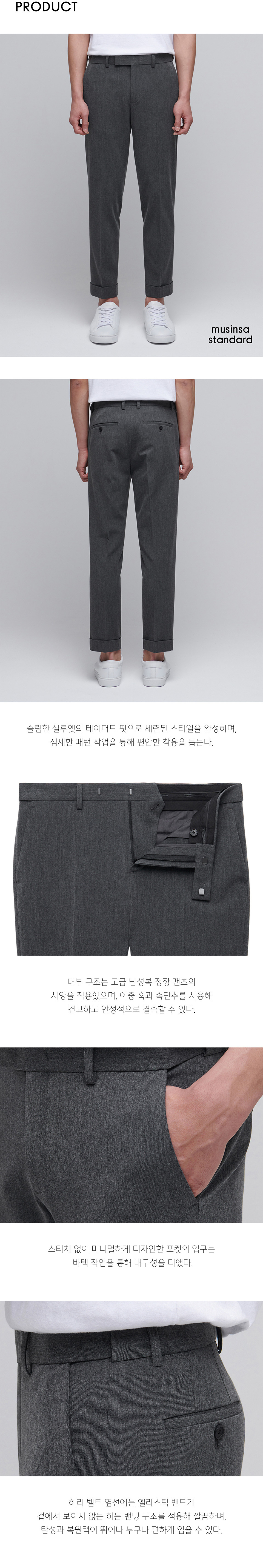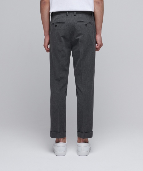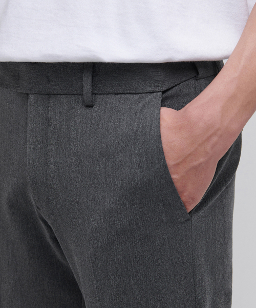 테이퍼드 턴업 히든 밴딩 크롭 슬랙스 [미디엄 그레이]