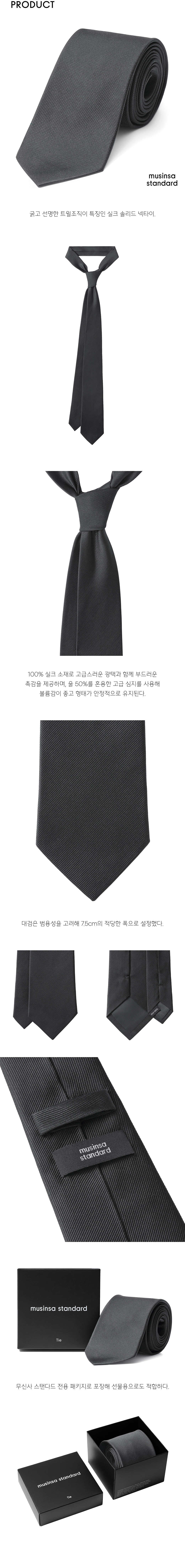 실크 솔리드 넥타이 [다크 그레이]