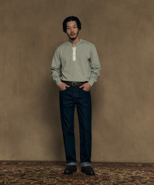 Vintage Long Sleeve Henley Shirt Dark Grey (Korea Edition)
