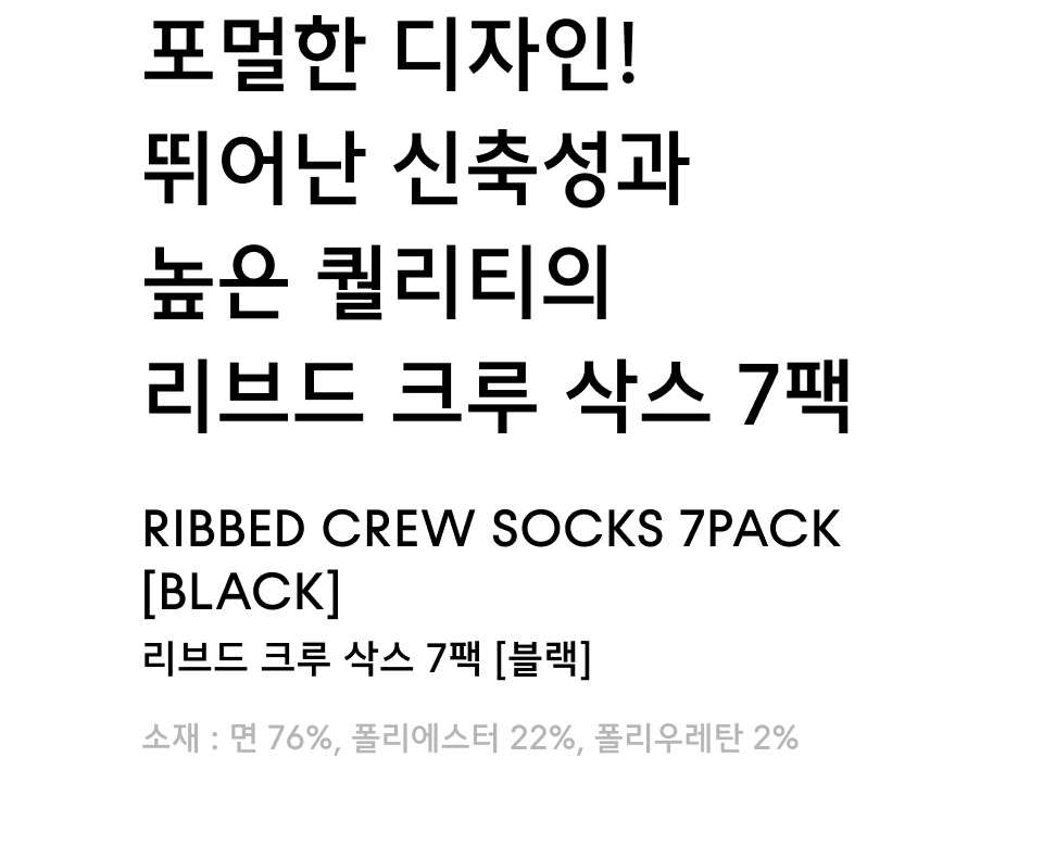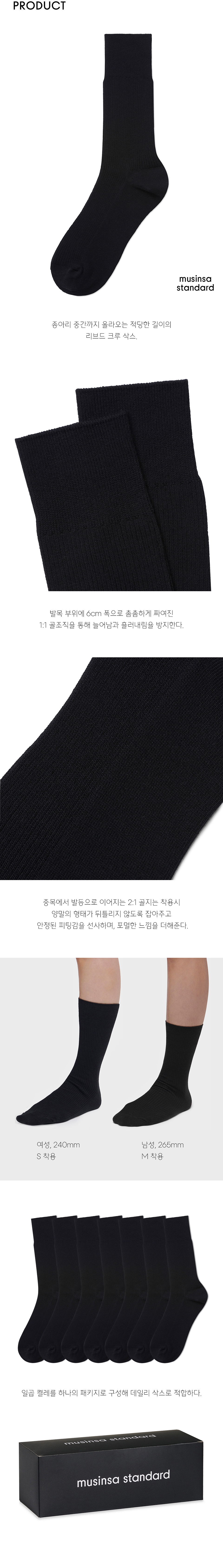 라이트웨이트 크루 삭스 7팩 [블랙]