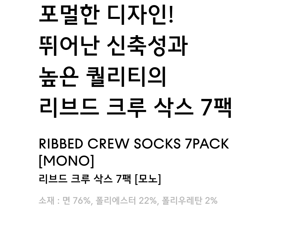 라이트웨이트 크루 삭스 7팩 [화이트]