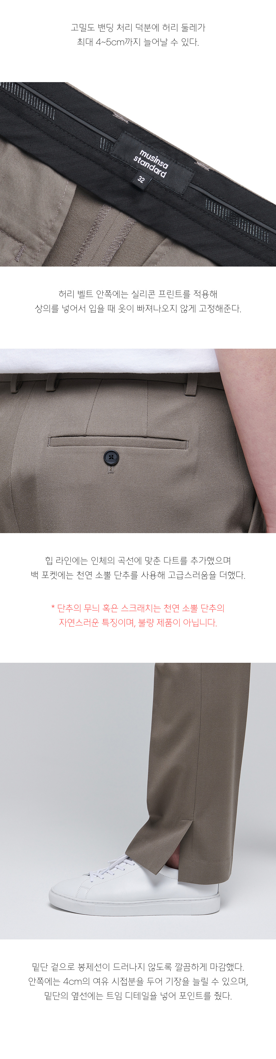 세미 와이드 슬릿 히든 밴딩 슬랙스 [더스티 베이지]