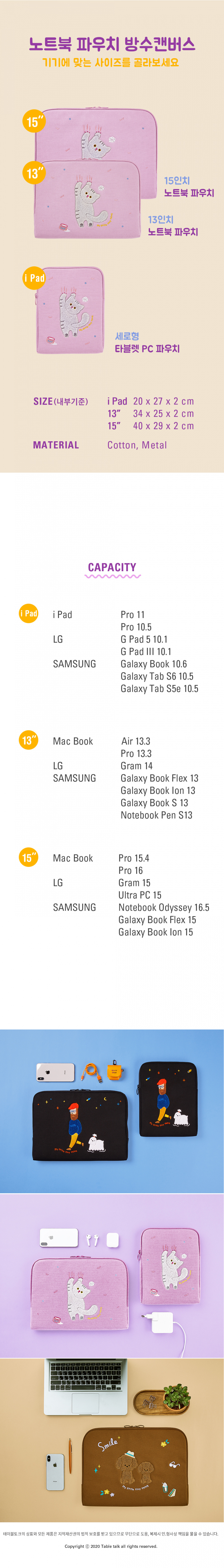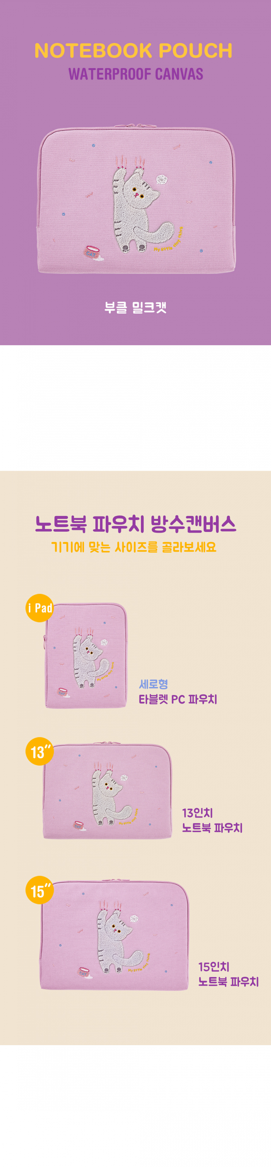 노트북 파우치 방수캔버스_부클 밀크캣 (아이패드. 13. 15)