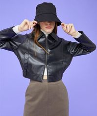 WOMEN 크롭 마일드레더 투웨이 집업 가죽자켓 [BLACK] 점퍼 ver.