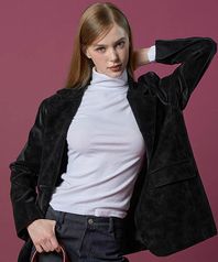 스웨이드 누벅 오버핏 데일리 가죽 자켓 블레이저 [BLACK]