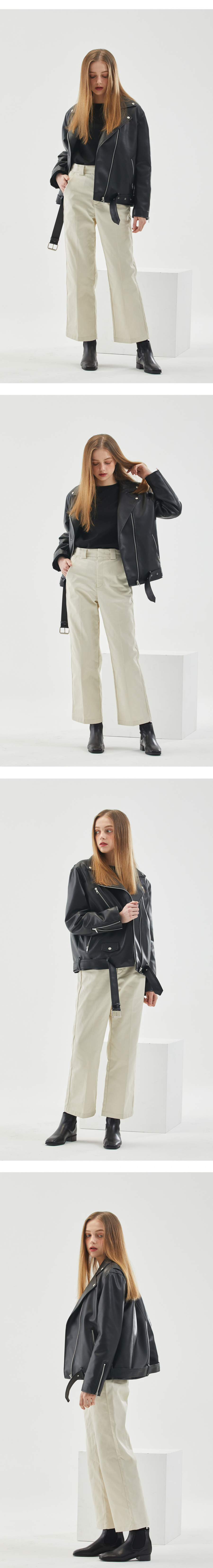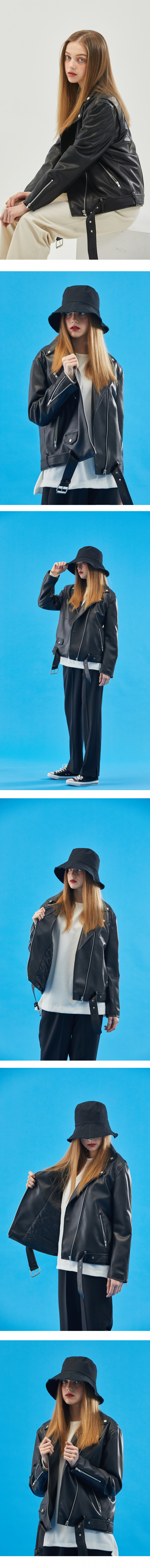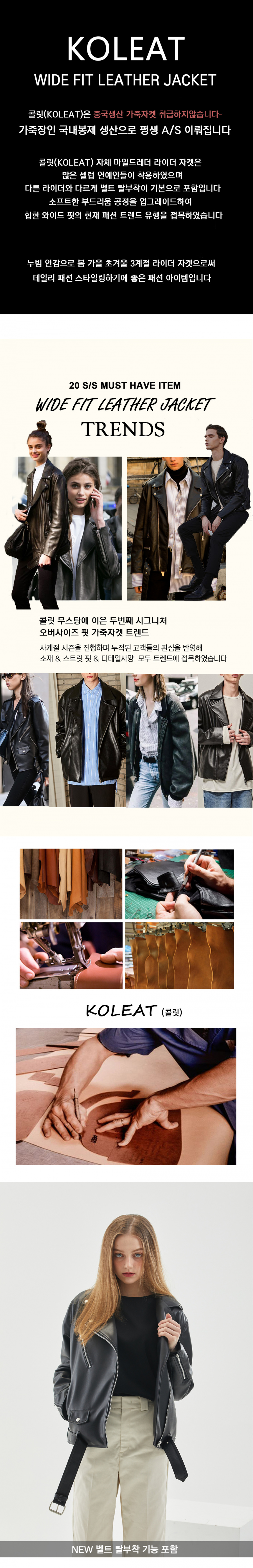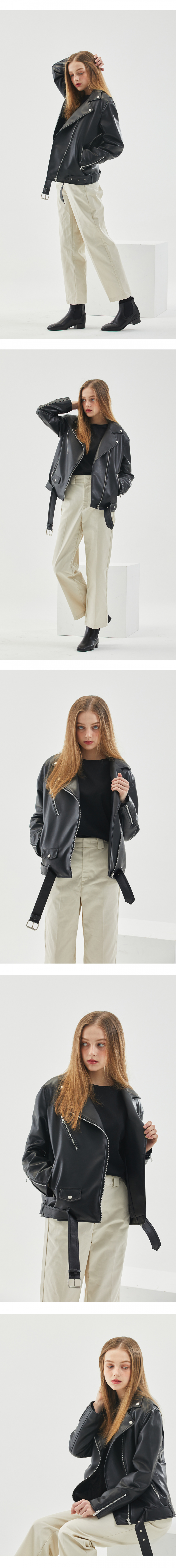 WOMEN 오버핏 마일드레더 라이더자켓 [벨트탈부착]