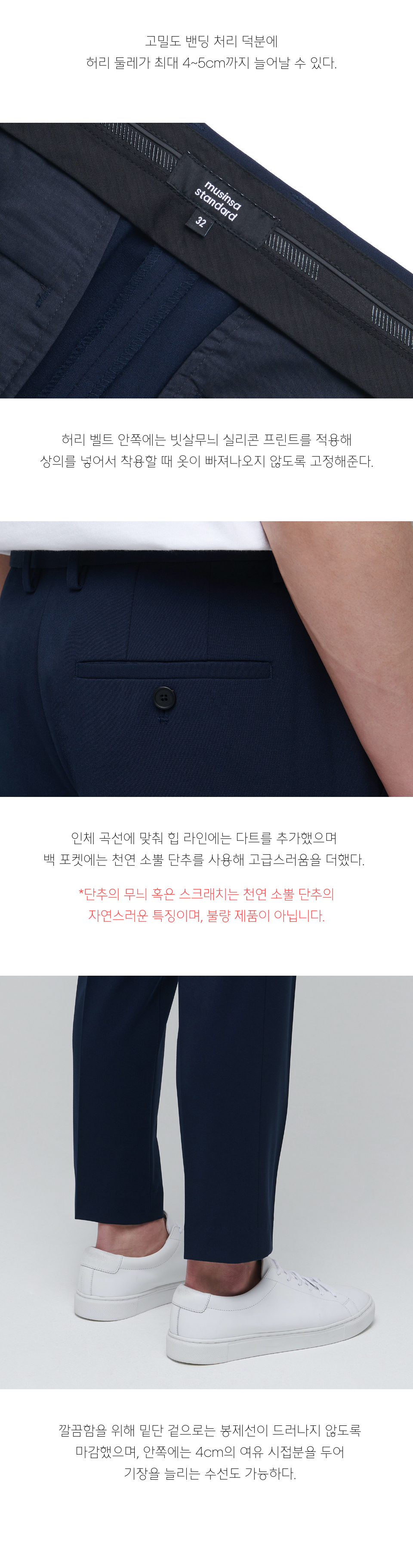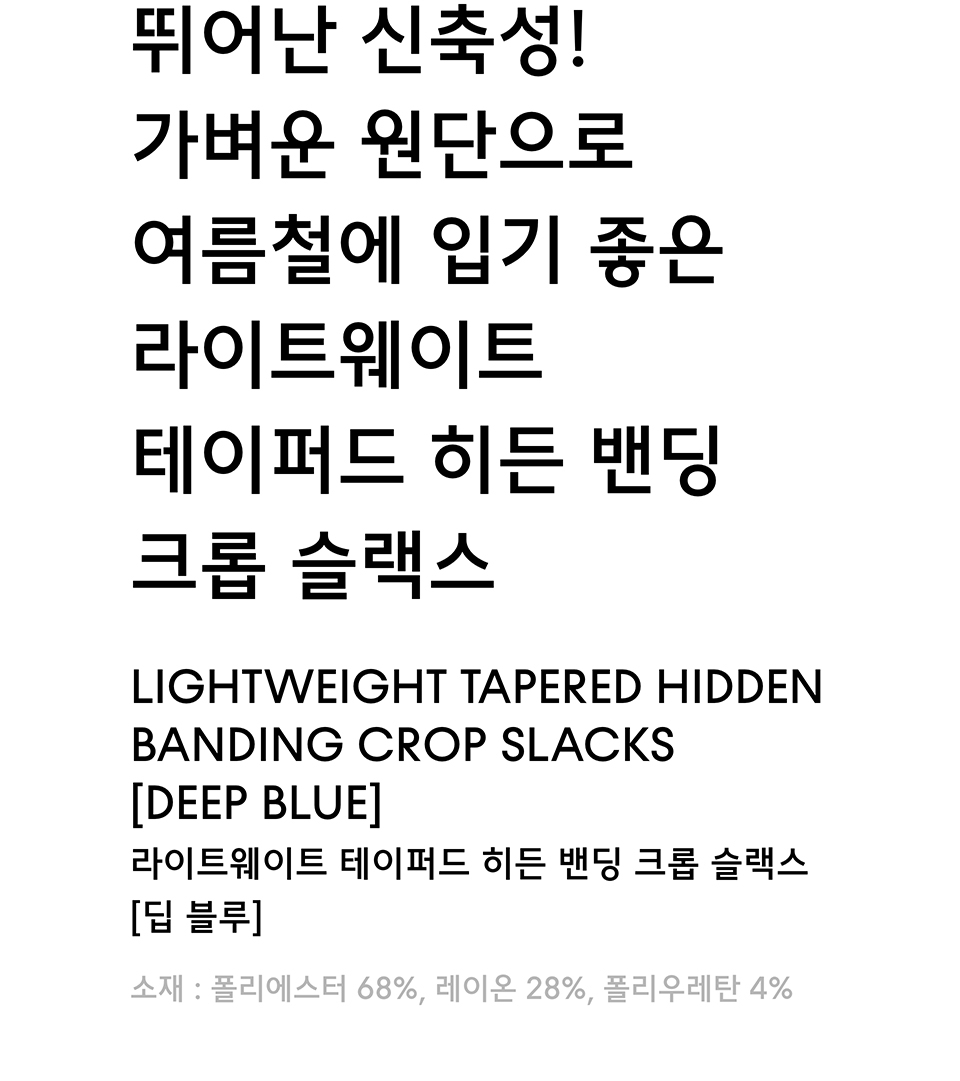 라이트웨이트 테이퍼드 히든 밴딩 크롭 슬랙스 [딥 블루]