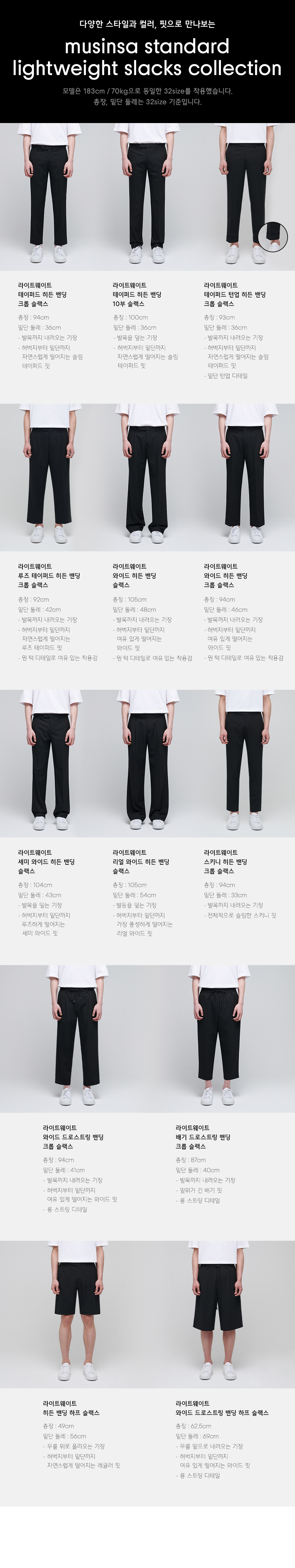 라이트웨이트 테이퍼드 히든 밴딩 크롭 슬랙스 [블랙]