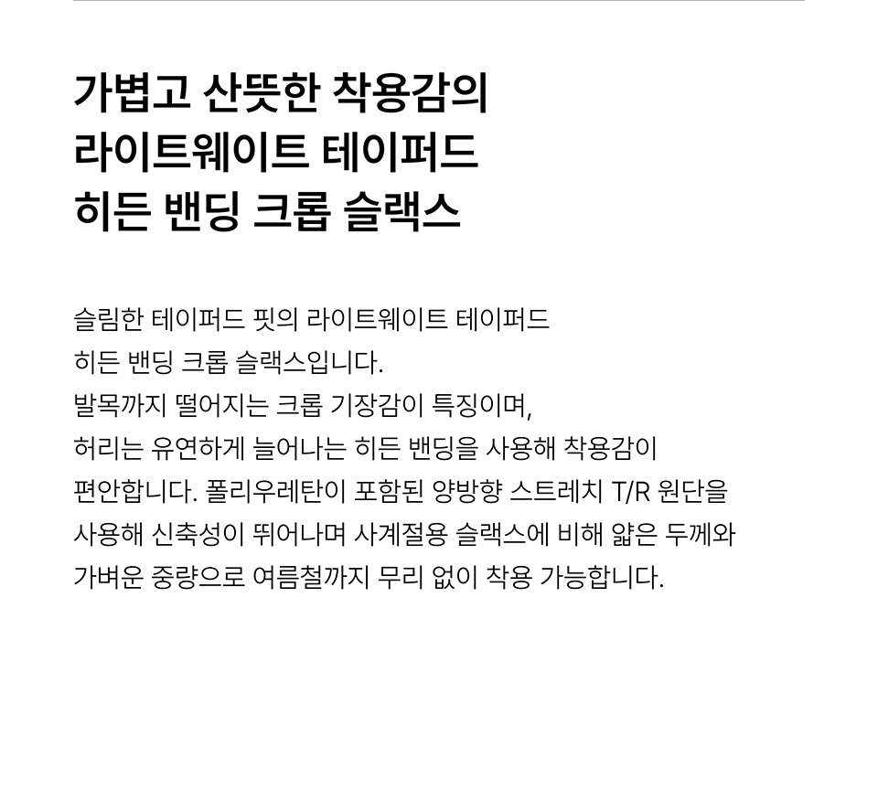 라이트웨이트 테이퍼드 히든 밴딩 크롭 슬랙스 [블랙]