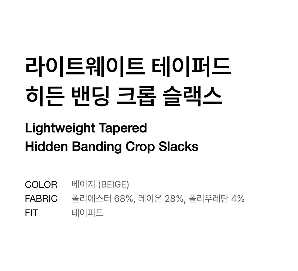 라이트웨이트 테이퍼드 히든 밴딩 크롭 슬랙스 [베이지]