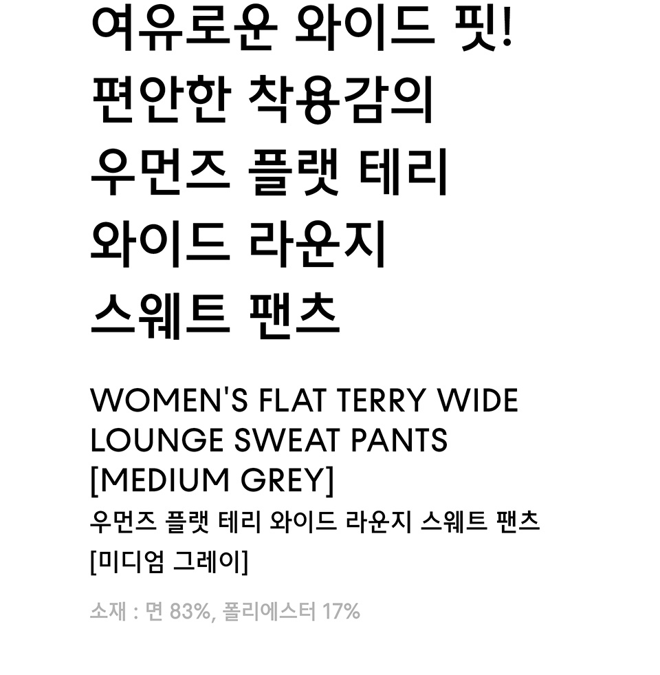 우먼즈 플랫 테리 와이드 라운지 스웨트 팬츠 [다크 그레이]