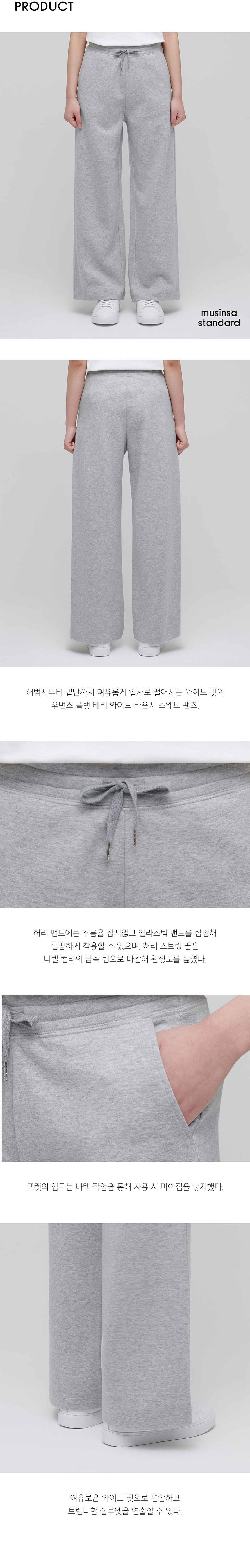 우먼즈 플랫 테리 와이드 라운지 스웨트 팬츠 [멜란지 라이트 그레이]