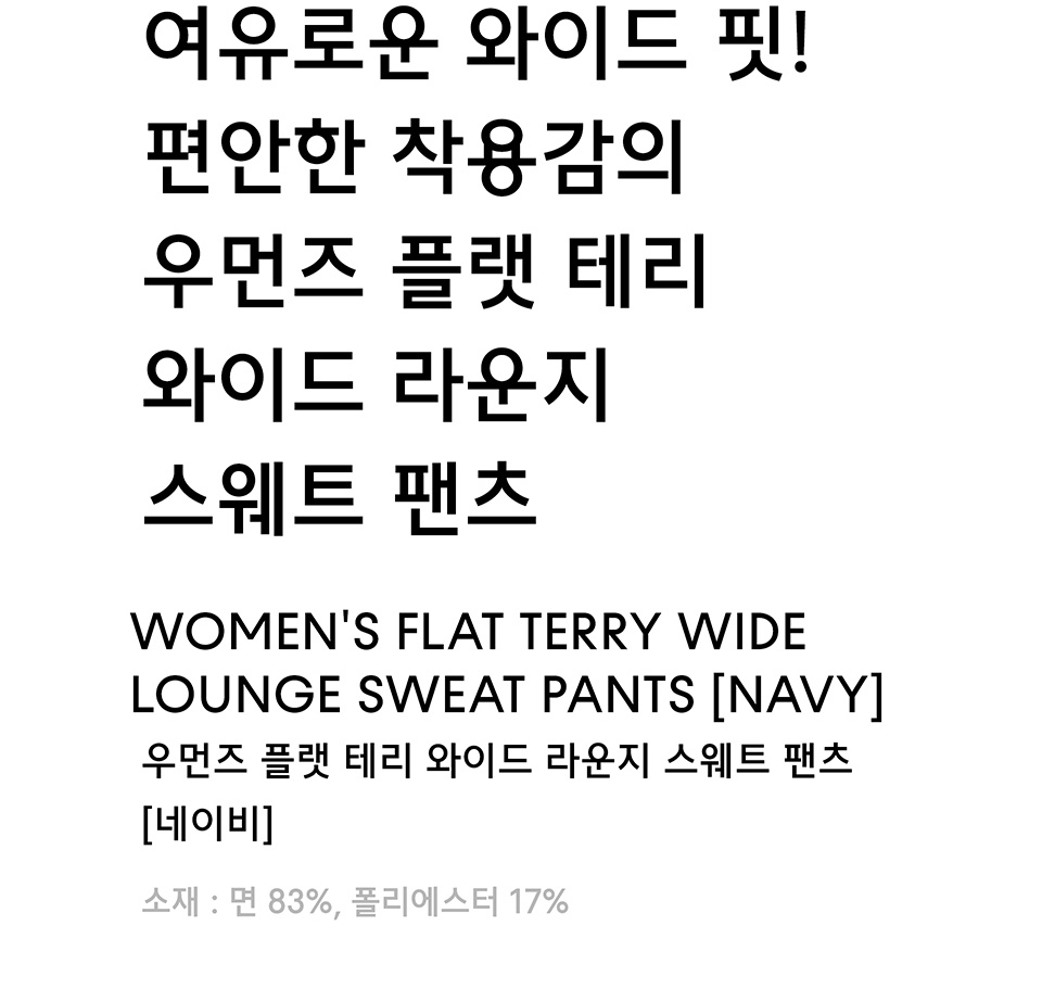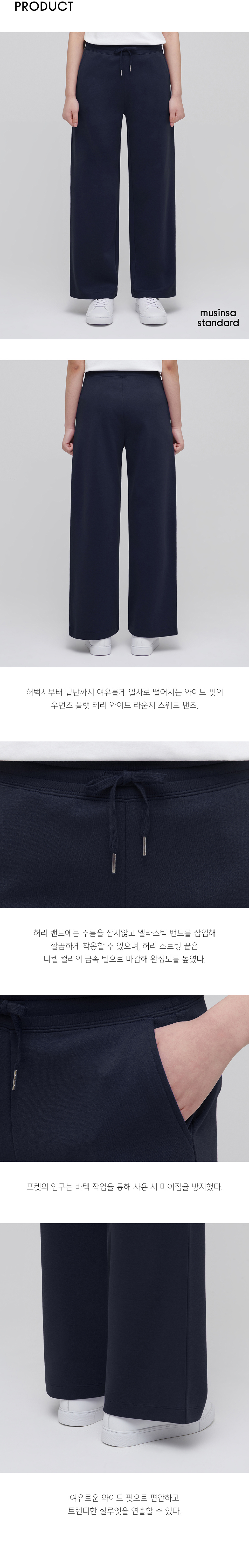 우먼즈 플랫 테리 와이드 라운지 스웨트 팬츠 [네이비]