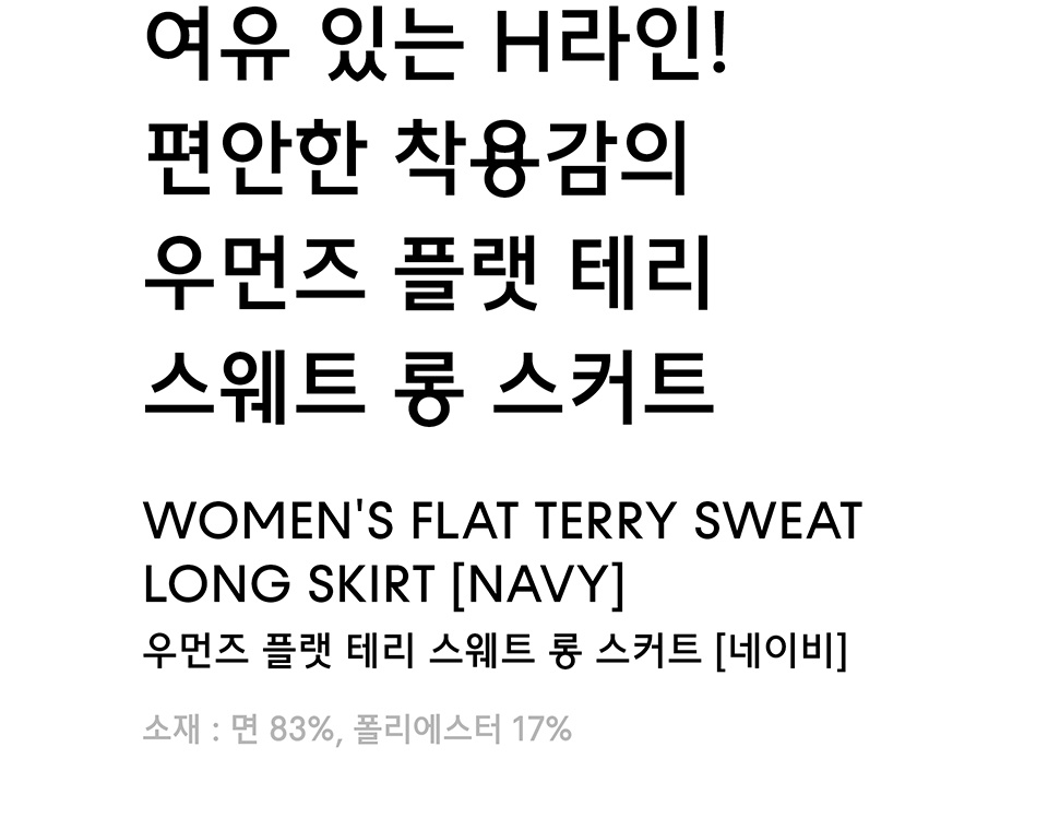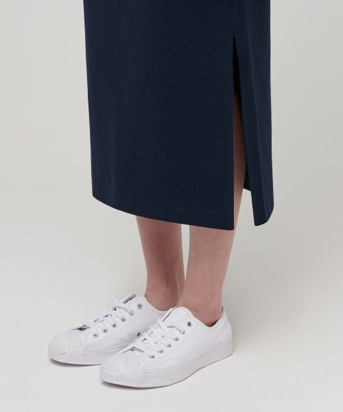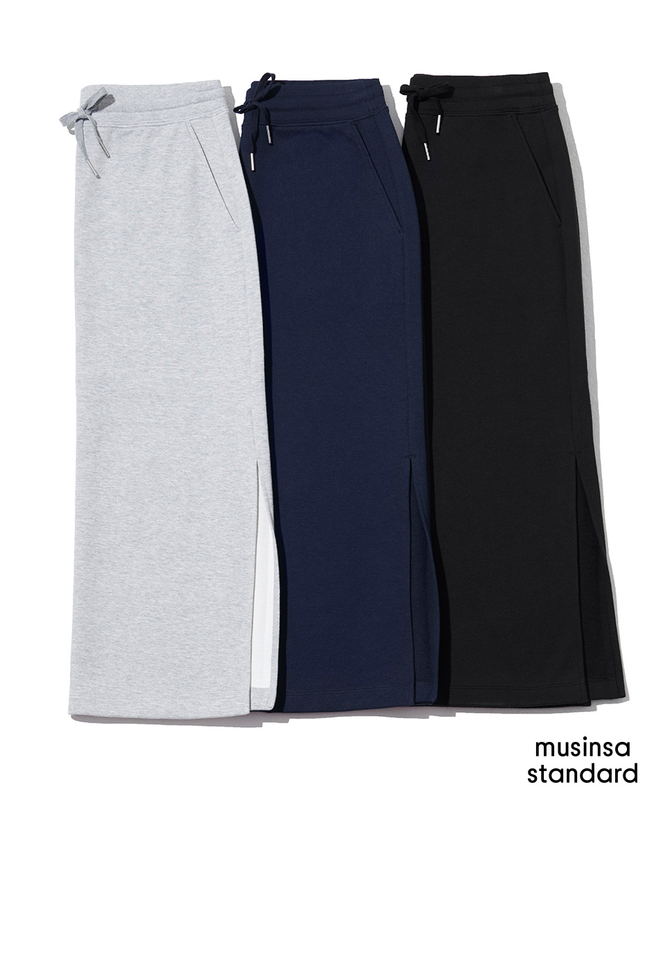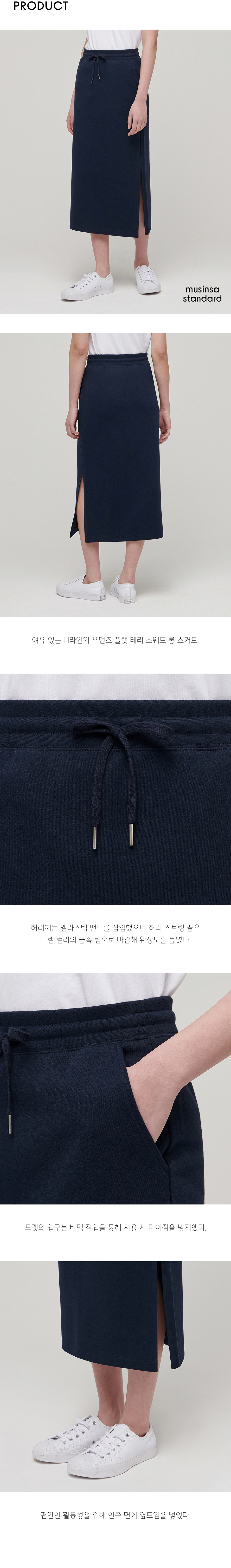 우먼즈 플랫 테리 스웨트 롱 스커트 [네이비]