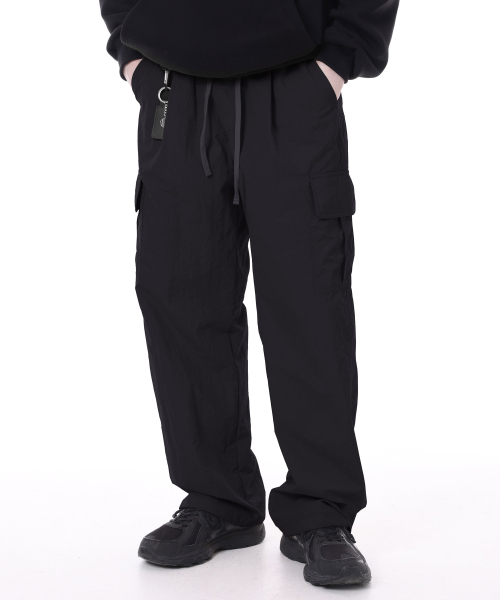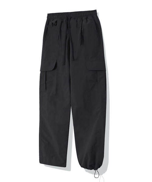[나일론] 세미 와이드 스트링 카고팬츠 [블랙]