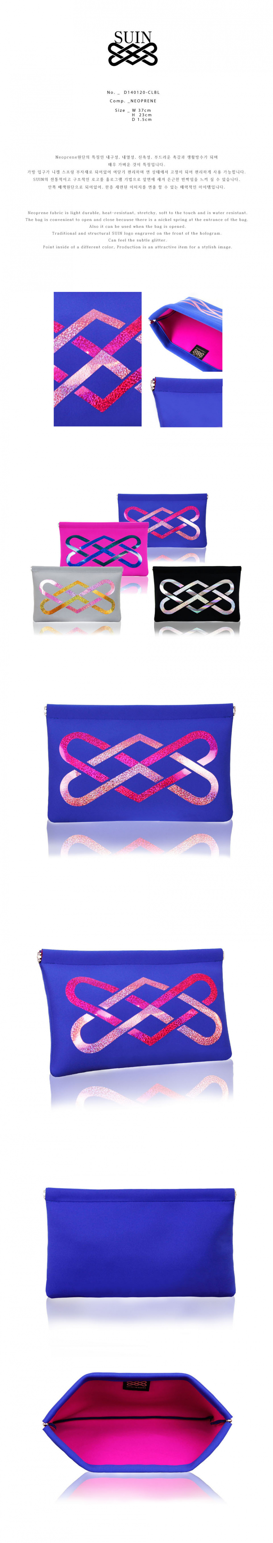 수인(SUIN)은 민족의 정서가 담겨있는 여러 조형 요소를 가방을 통해 표현하는 브랜드입니다. 독창성 있는 아름다움을 트렌드와 유니크한 젊은 감성으로 재해석하고, 기존에 볼 수 없었던 새로운 느낌의 제품을 만나 볼 수 있습니다. 핸드메이드 상품으로 100%로 한국 생산하며, 네오프렌 소재의 특징을 이용해 절개, 가방의 변형, 컬러 배색 등으로 재미를 주는 제품을 만들고 있습니다.