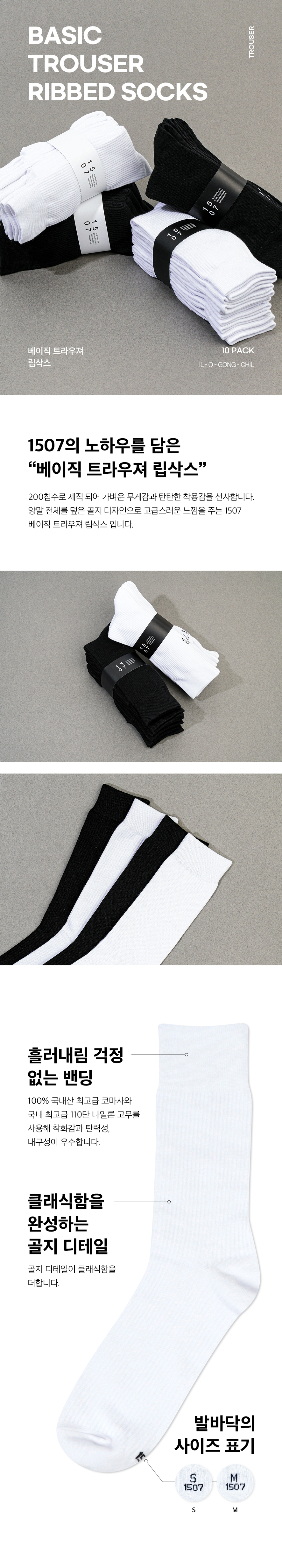 [10PACK] 1507 베이직 트라우져 립삭스 _ 스노우 화이트/블랙