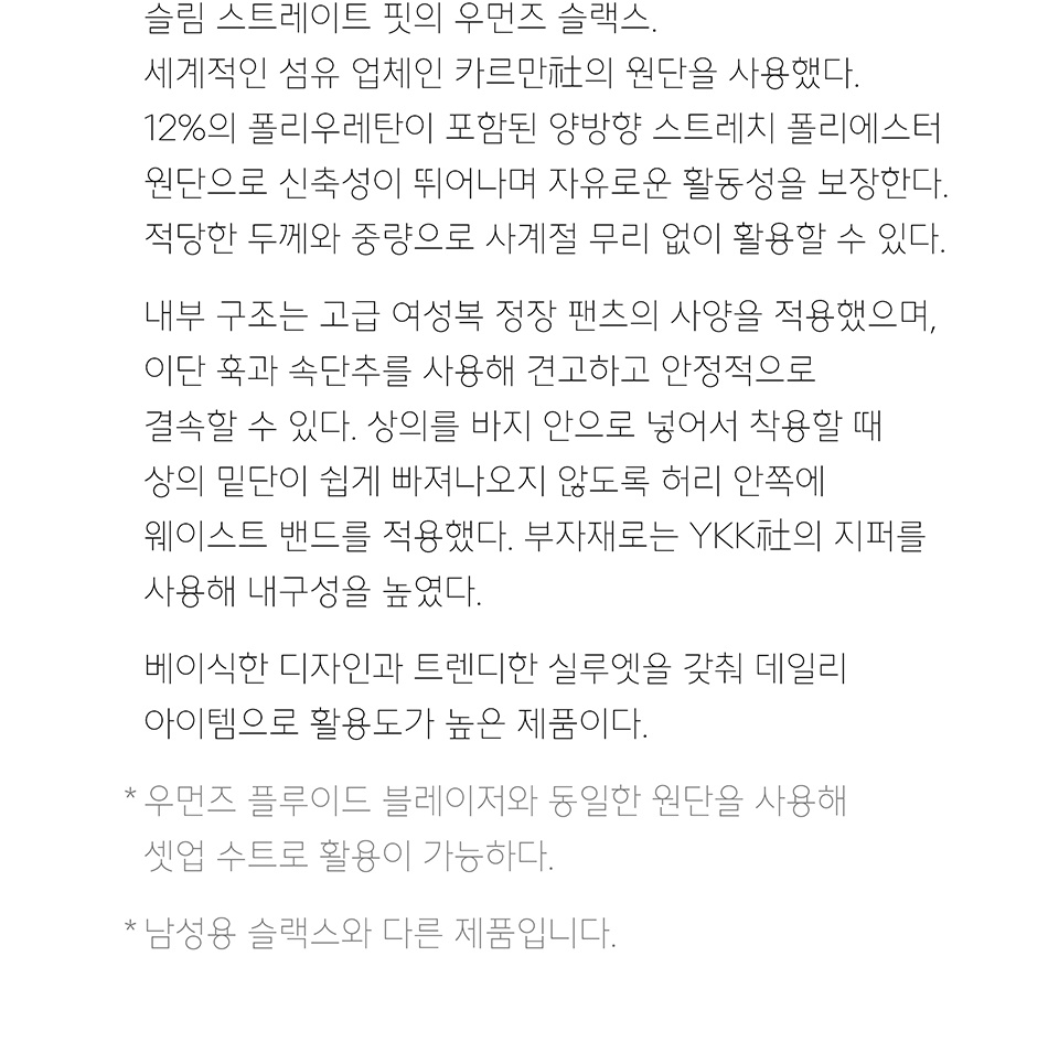 우먼즈 슬림 스트레이트 히든 밴딩 슬랙스 [블랙]