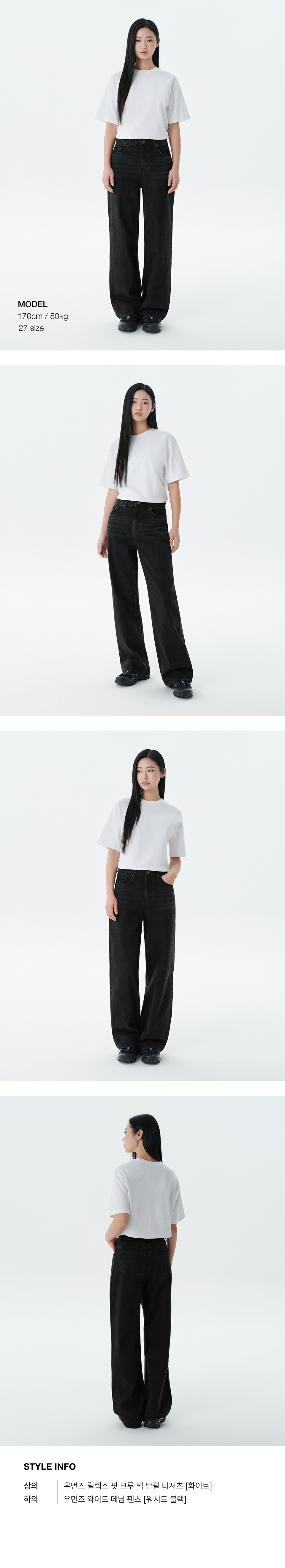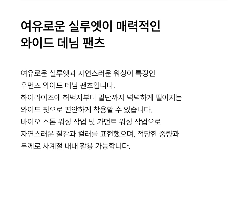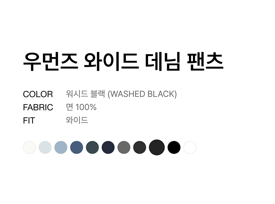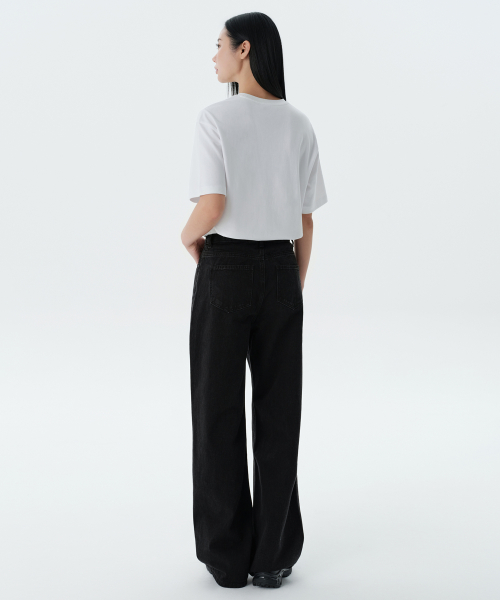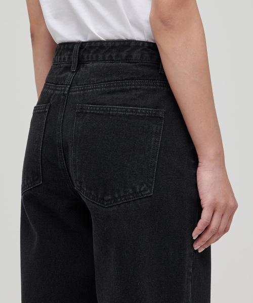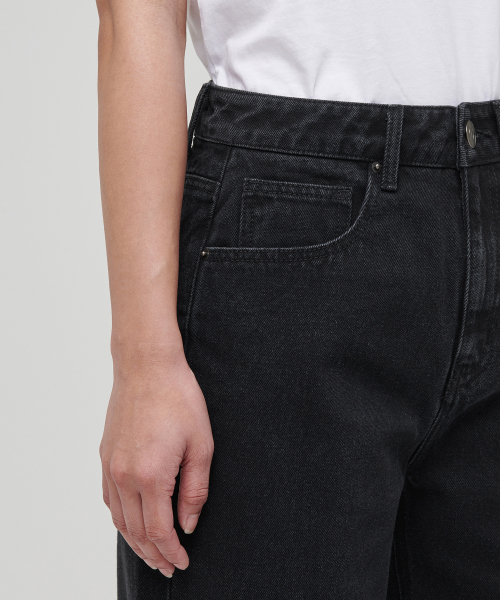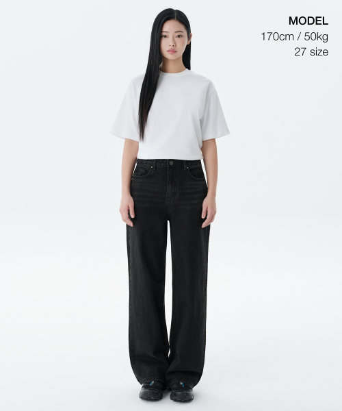 우먼즈 와이드 데님 팬츠 [워시드 블랙]