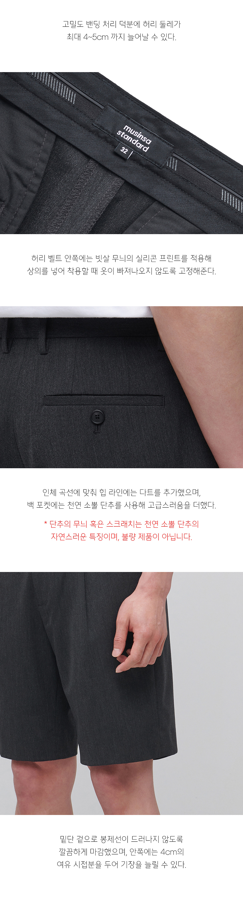 라이트웨이트 히든 밴딩 하프 슬랙스 [차콜 그레이]